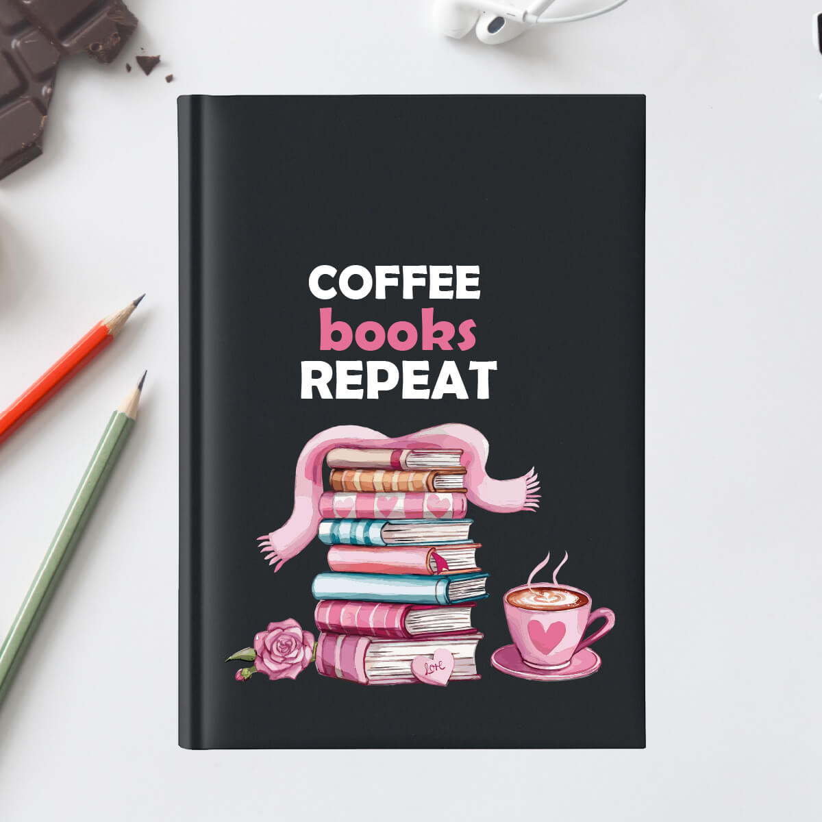 Agenda „Coffee. Books. Repeat.” este planificatorul neoficial al cititorilor funcționali. Am creat un design special pentru toți cei care iubesc să scrie, să citească și știu cum să își exploreze imaginația. Dacă ziua ta începe cu cafea și se termină cu „încă un capitol”, agenda asta te înțelege. Nu te judecă pentru pauzele dese. Le notează.