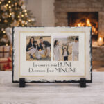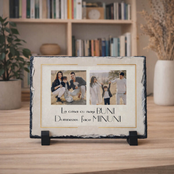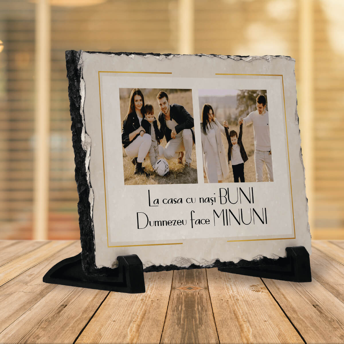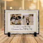 Piatra de ardezie poate fi personalizată cu două poze și mesaj