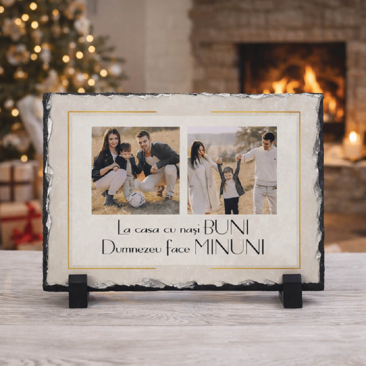 Piatră Ardezie pentru Nași – Personalizată cu 2 poze și mesaj