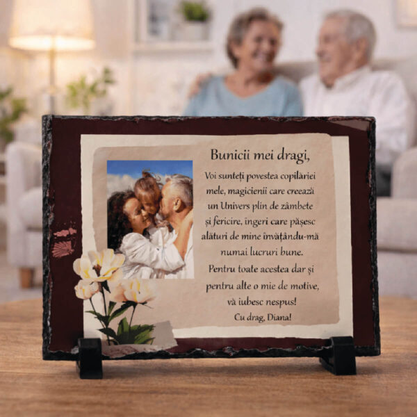 Cauți un cadou pentru bunici? Alege o Piatră Ardezie Personalizată cu o amintire dragă și cu un mesaj simbolic.