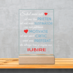 Nu știm cum îți surprinzi soțul de obicei însă, noi ți-am pregătit un design aparte prin intermediul căruia îi poți transmite toată aprecierea ta. Această Plachetă Acrilică este mai mult decât un cadou inedit, impresionant. Reprezintă tot ceea ce EL înseamnă pentru tine, reprezintă cea mai trainică legătură care vă leagă pentru totdeauna.