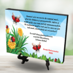 Știm cum este să cauți un cadou deosebit pentru o persoană deosebită. Tocmai de aceea am creat acest design elegant și l-am imprimat pe o plachetă de lemn. Rezultatul este minunat, nu-i așa? Acum poți să oferi un cadou inedit, impresionant, tematic pentru grupa buburuzelor.