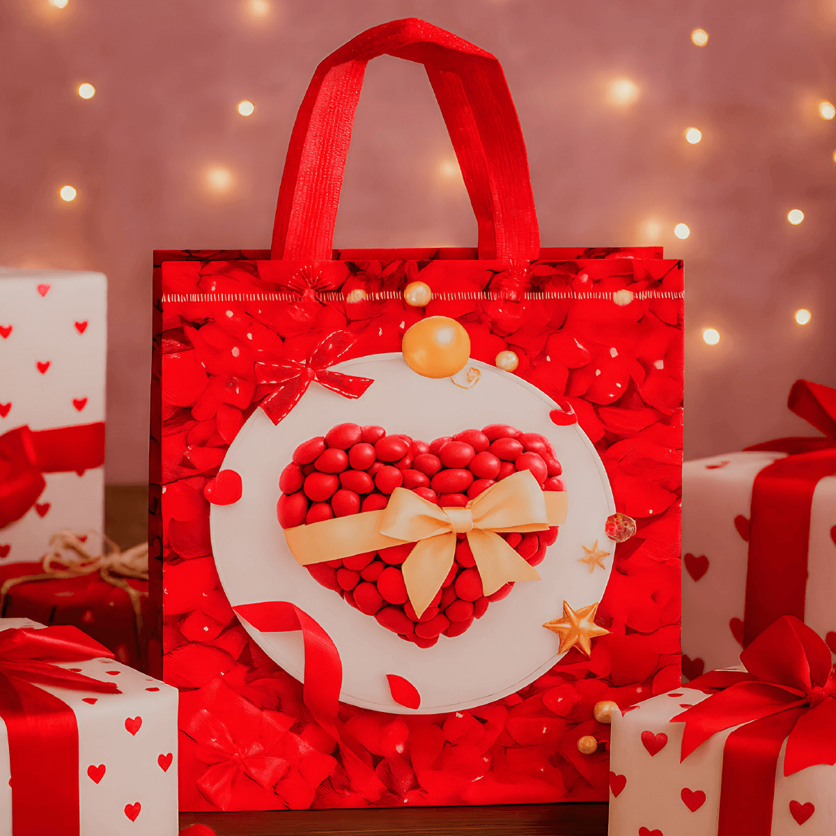 Realizată din material rezistent, cu mâner lat și confortabil, sacoșa nu este doar frumoasă, ci și practică. Designul său festiv o face potrivită pentru Valentine’s Day, aniversări, logodne sau orice moment special în care vrei să surprinzi persoana iubită.