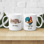 Set format din două căni pentru cuplu, design “Pussy and Cock”.
