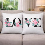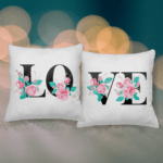 Setul de perne personalizate LOVE se adresează cuplurilor care știu cum să împartă