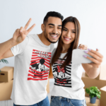 Când dragoste plutește în aer, aveți nevoie de un set de tricouri cuplu personalizate tematic!